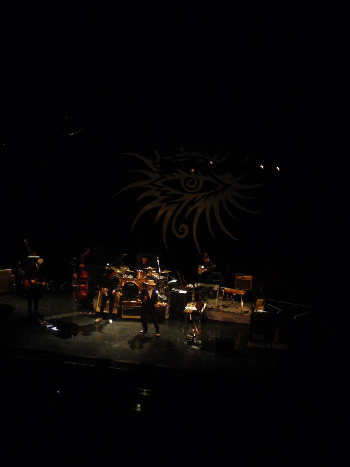 his Fender for the first time tonight that got the night moving for me – terrific solo from Bob, and he and Charlie Sexton were in some sort of groove. From keyboard to harp to guitar, Bob traveled all night. He seemed to be in a jocular mood, particularly evident when he moved to center stage and did a little play acting for the benefit of the crowd. I thought he was going to break into a two-step at one point. Perhaps it was on account of it being the last night of the tour. As one would have expected, he encored with Like A Rolling Stone and All Along The Watchtower, and having been to seven shows, I’ve probably heard both of them seven times now; but things have changed, at least for Watchtower – a different arrangement, and it’s given it a whole new life. Rather than ending the show there, they moved into Blowin In The Wind, an unexpected but welcome surprise. I think I even sang along, quite an unusual event for me at a Bob show, when mostly I haven’t got a clue what he’s singing. There’s no question, if you want to be a Bob fan, you’ve got to pay attention.