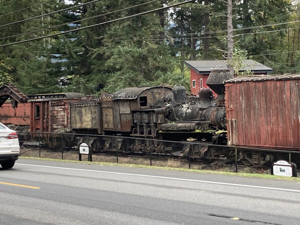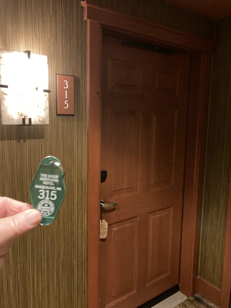 Back on the road after lunch, we returned to Fall City. A sign on the side of the road tells us we’re entering Twin Peaks, and the cornucopia of souvenir and tourist trap shops that line the main (only?) street in town tells us all we need to know about Fall City. We don’t remember Coop shopping for bobbles and tchotchkes, so we skipped the shops and stopped only briefly to look at the rusted out engines and train cars that answer the question, Where did Laura Palmer die? before moving on to Salish Lodge, aka The Great Northern Hotel, where Coop stayed while in town. We, as twits, hightailed it up to Room 315 (Coop’s room) for the obligatory photo, before the hotel staff kicked us out for loitering.