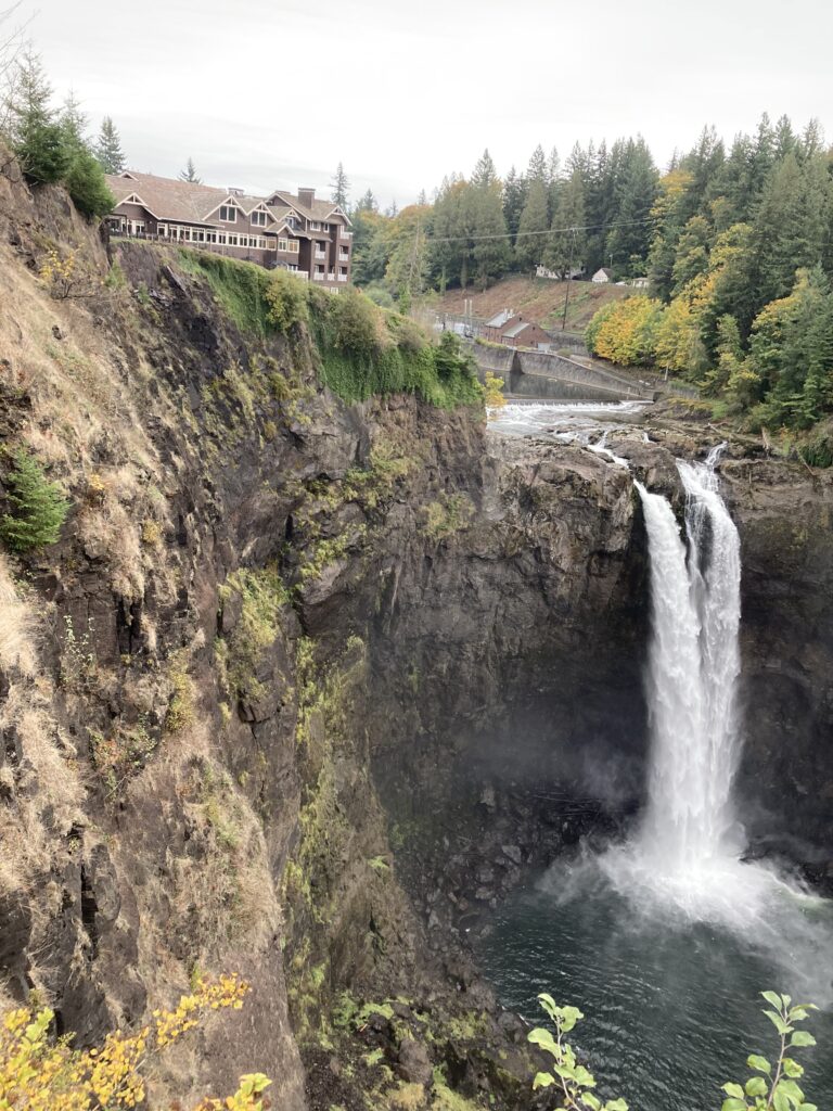 The hotel overlooks Snoqualmie Falls, which looked considerably more intense in the crane shot that runs behind the opening credits of each show. I know this, because immediately after I got home, I rented Season One from the library, and while I waited for it to arrive, I watched the first two episodes on Paramount+.